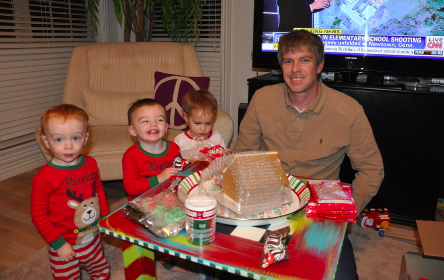 We had a fun little family night a few weeks ago! B brought home dinner, KFC..his choice obviously, and we decorated a gingerbread house! Knox was so excited!